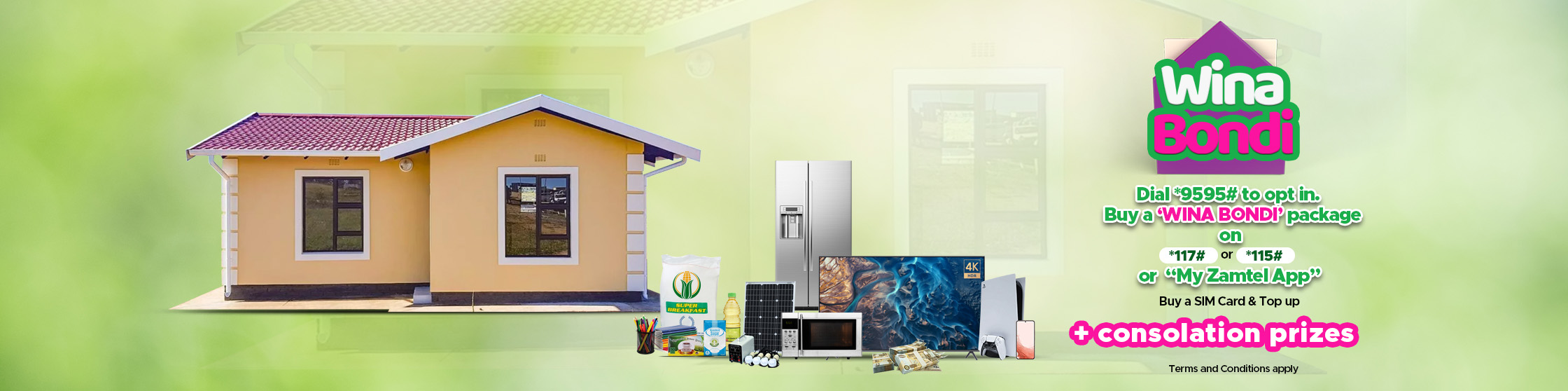 WINA BONDI NA ZAMTEL: Enter the promotion by dialing *9595# and subscribe to qualifying offers on *117#, *115#, and My Zamtel App; the higher your package value, the greater your chance of winning. Winners will be drawn electronically via a secure 'Draw Application' every Friday, capturing all entries from Mobile Money *115#, *117#, and My Zamtel App.